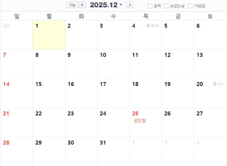 ▣ 12월 - 12월 25일(목)