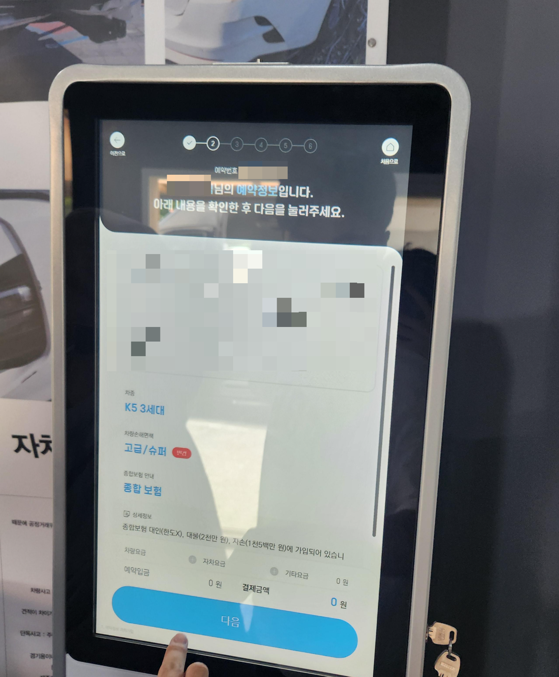 셔틀을 타고 10분 정도 이동하면 신동아렌트카 인수/반납 장소에 도착을 합니다. 키오스크를 통해 예약 확인을 하고, 완료되면 직원 분께서 차키와 차량을 안내해주십니다.