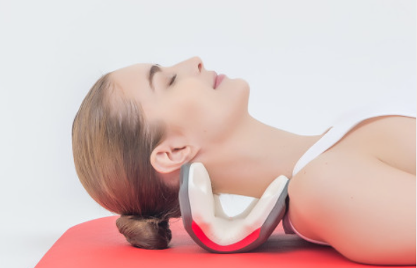 넥가드 닥터는 거북목, 목디스크 등으로 인한 불편하고 뻐근한 목을 강력하고 편안하게 견인해주는, 치료를 목적으로 개발된 정형용 견인장치로, 의료기기입니다. 넥가드 닥터가 어깨와 머리 뒷부분에 걸리면서 젖혀진 머리 무게에 알맞은 강도로 목을 상하로 밀어주어서 견인이 되는 원리입니다.