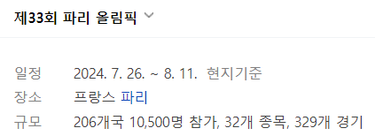 제 33회 파리올림픽은 7월 25일 개막을 시작으로 7월 26일부터 8월 11일까지 17일동안 진행됩니다.
