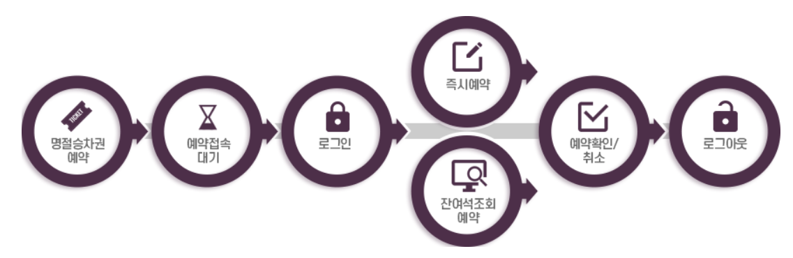 ✔ 추석 승차권 예매는 온라인(PC, 모바일)으로만 시행합니다. 따라서 역 창구, 키오스크, TMO 등 오프라인 창구에서 구입하실 수 없습니다.